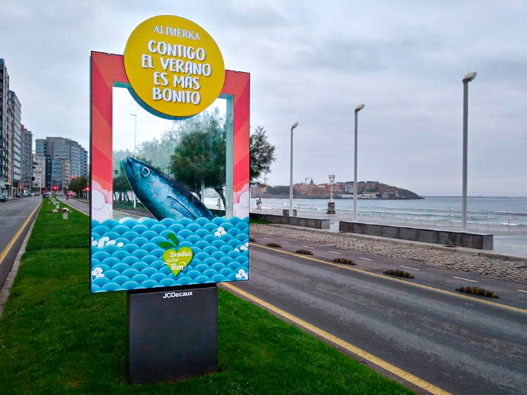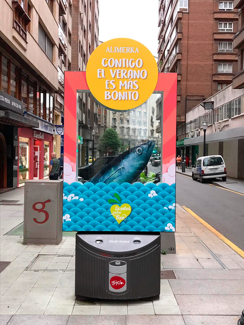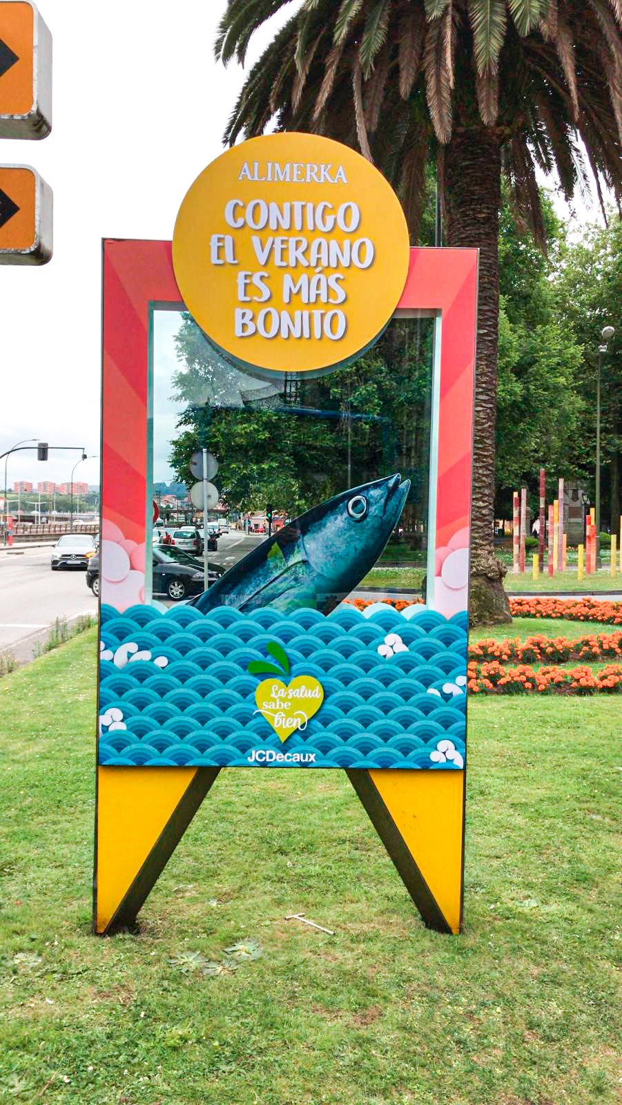 Alimerka promociona sus bonitos utilizando mupis transparentes con modelos 3D en Asturias