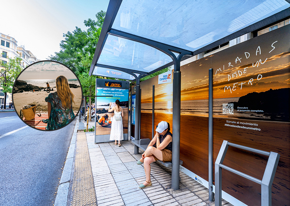 Acción que comunica turismo para las islas canarias, con mupis y marquesinas con vinilado de gran formato.