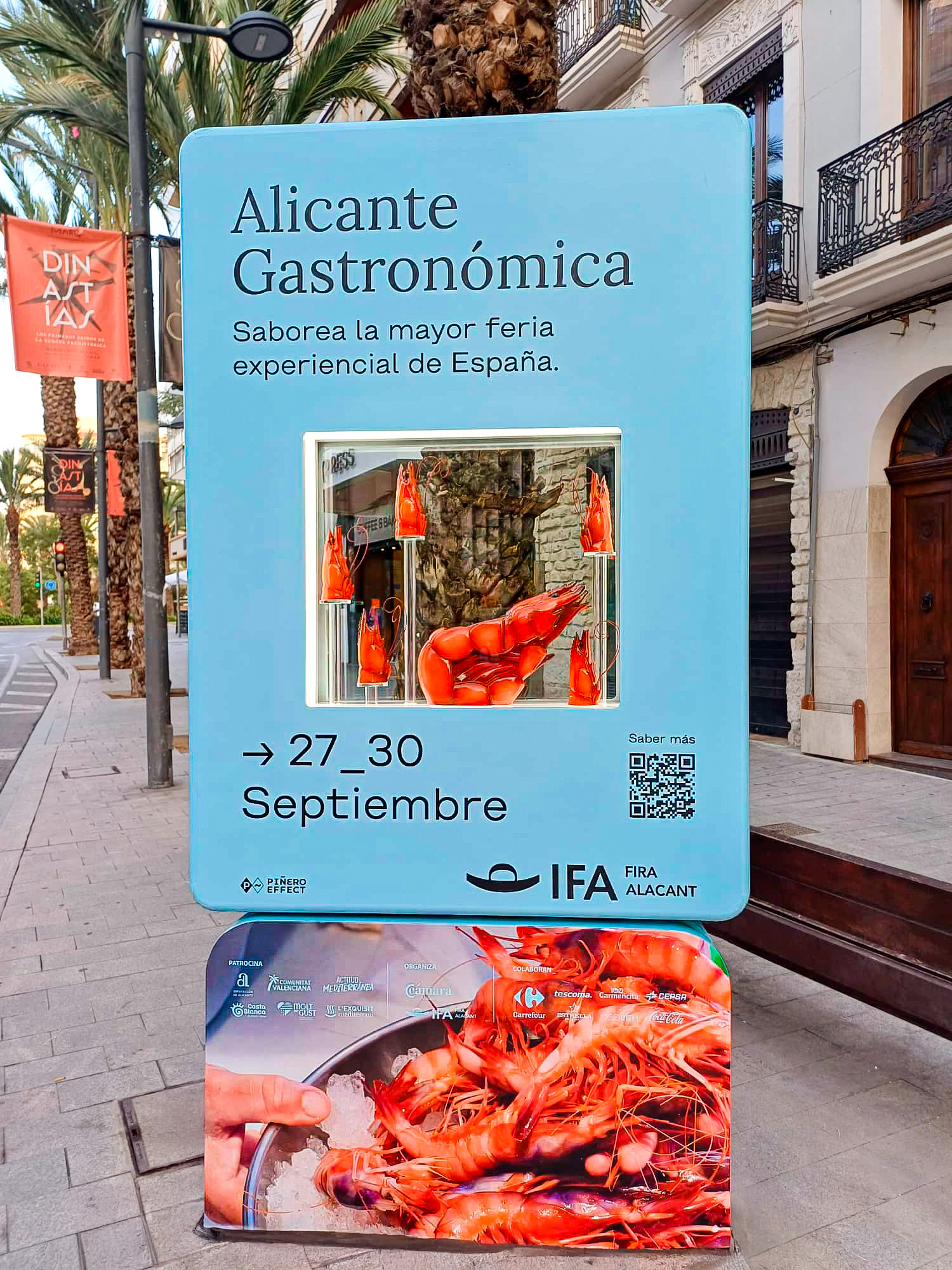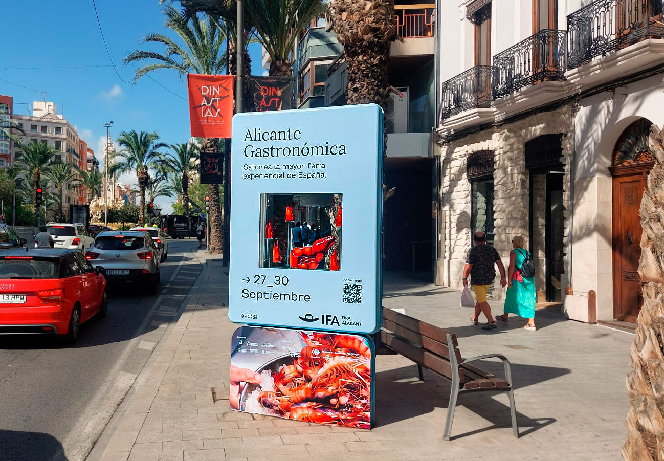 Campaña que promueve la feria gastronómica de alicante, con un mupi 3D que incluye maquetas de comida dentro.