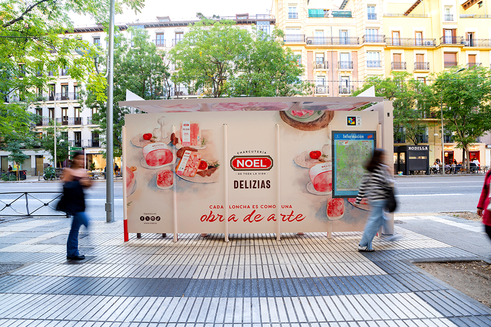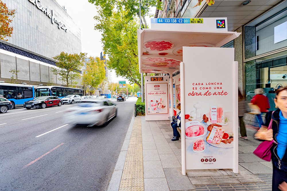 Noel vinila las marquesinas de Madrid con su campaña “Cada loncha es como una obra de arte”, acercando al público a uno de sus productos estrella