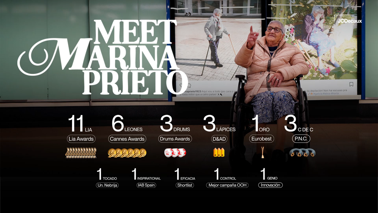 En busca de una historia qué mereciera la pena contar, dimos con el perfil de Marina Prieto, una señora gallega que el 23 de septiembre de 2023 celebró su 100 cumpleaños. Sus publicaciones en Instagram, donde comparte su día a día, se mostraron en la red de metro y conectaron con los viajeros. Tanto, que pasó de los 28 seguidores a superar los 5.000 en apenas una semana. A día de hoy, cuenta con más de 10.000. Esta campaña no solo sirvió como altavoz, sino que generó una conversación tanto en redes sociales como en la prensa nacional sobre Marina Prieto.