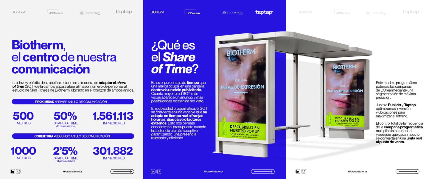 Con un total de 49 emplazamientos digitales , la campaña no solo multiplicó la notoriedad de Biotherm, sino que aseguró que el control total de la frecuencia se tradujera en visitas reales al número 31 de la calle Fernando VI.