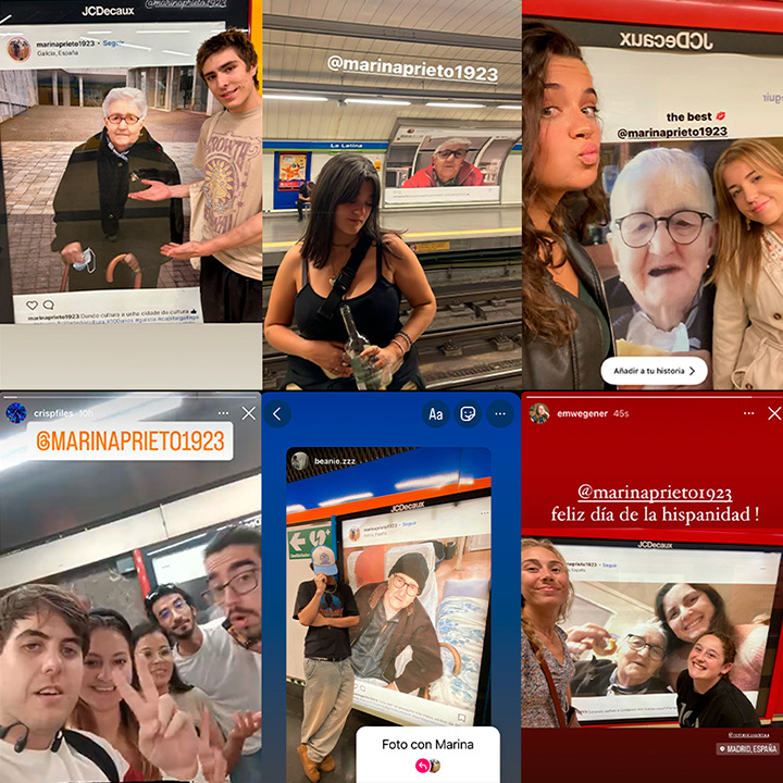 Cientos de publicaciones de Instagram en las que aparecía Marina se colocarían en espacios publicitarios a lo largo del Metro de Madrid. Se imprimieron "tal cual", sin explicaciones, sin llamadas a la acción, sin logotipos ni edición visual de ningún tipo, en espacios "no deseados"/no vendidos