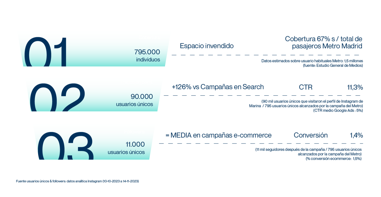 Convertimos a Marina Prieto en una influencer, creando una conversación relevante sobre su historia. La campaña, desplegada exclusivamente en el Metro de Madrid, logró un impacto espectacular al fusionar el poder de la publicidad exterior y la amplificación de las redes sociales.